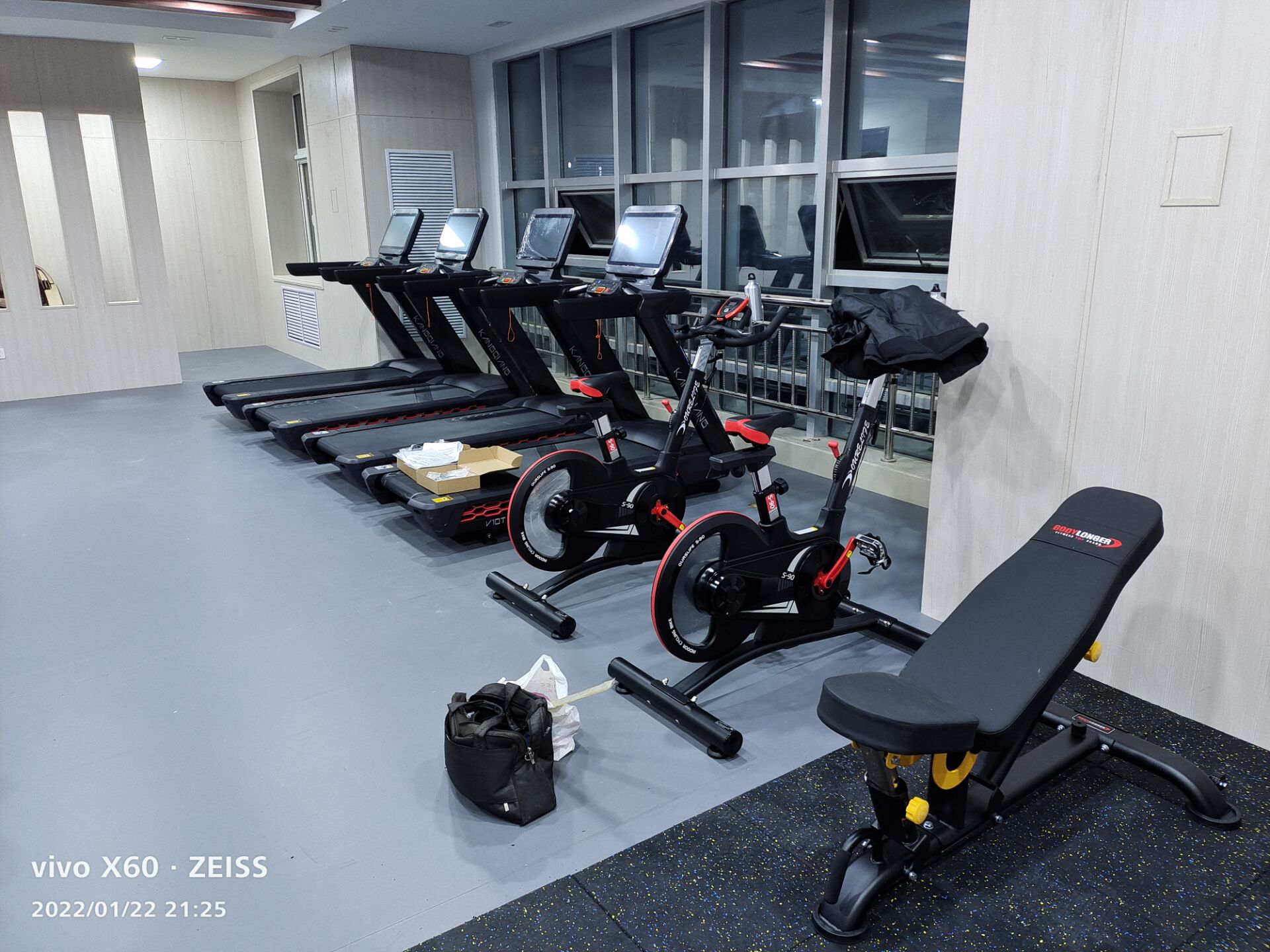b) 有氧运动器械:跑步机、椭圆机、动感单车。