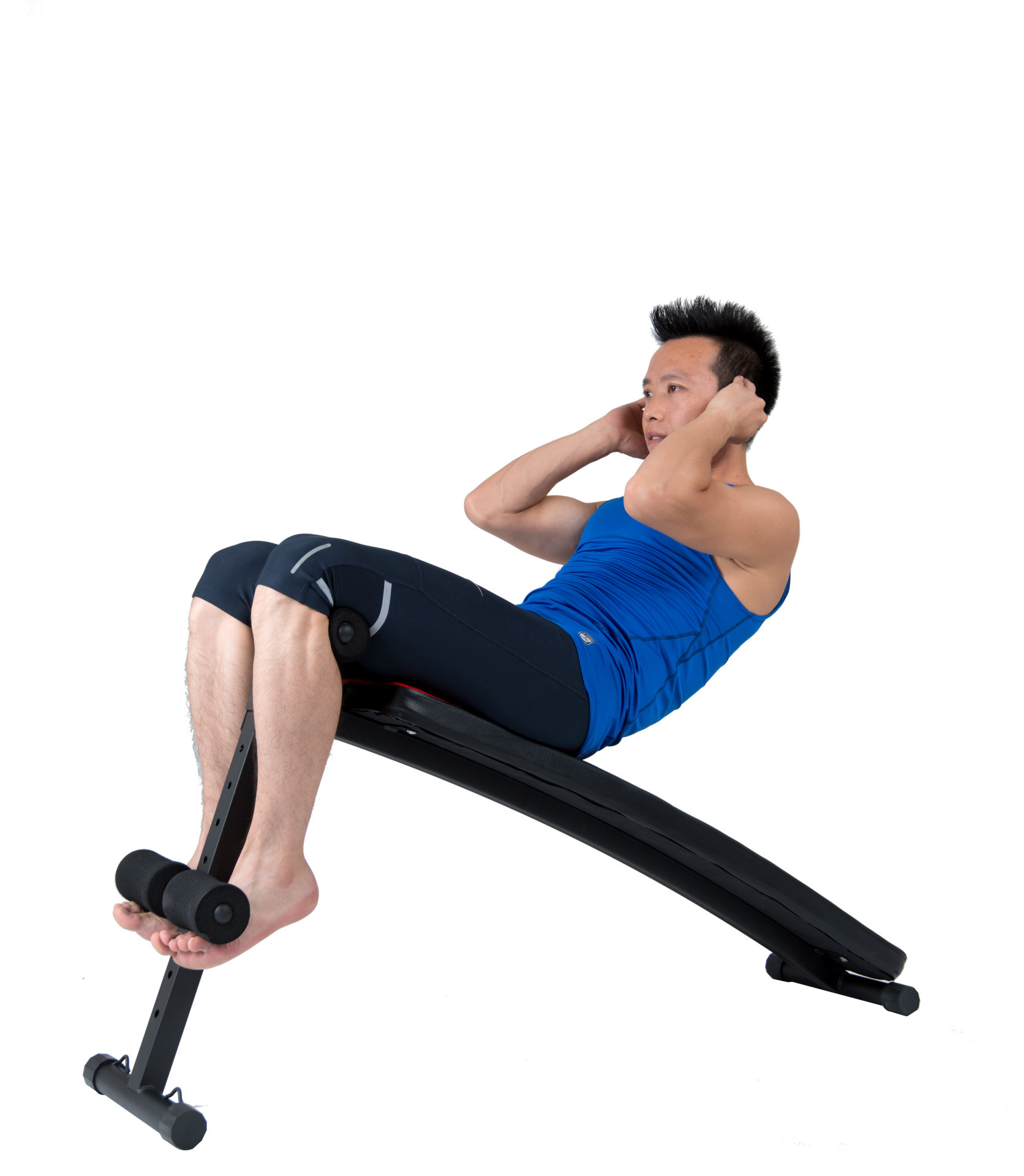 首先,我们来介绍一个常见的腹部健身器材——仰卧起坐板。使用仰卧起坐板时,首先需要将板子调到适当的角度,然后选择呈坐姿的方式坐到板子上,将双腿和臀部固定于垂直位置,双手交叉抱于胸前,然后开始做仰卧起坐。在做运动时,应该注意双手不要搭在脖子后面,以免压迫颈椎;在起坐的过程中,尽量用腹部的力量慢慢坐起来,不要有腰部或者颈部的挤压感。