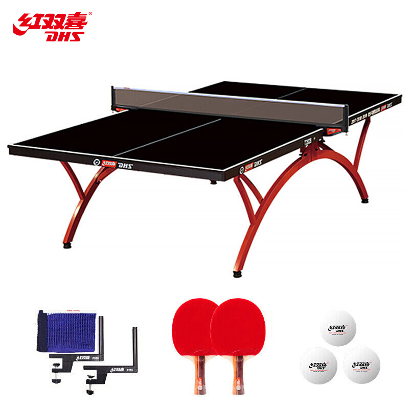 红双喜DHS 乒乓球桌室内黑色面板乒乓球台训练比赛用乒乓球案子DXBM015-1(T2828)赠网架/球拍/乒乓球