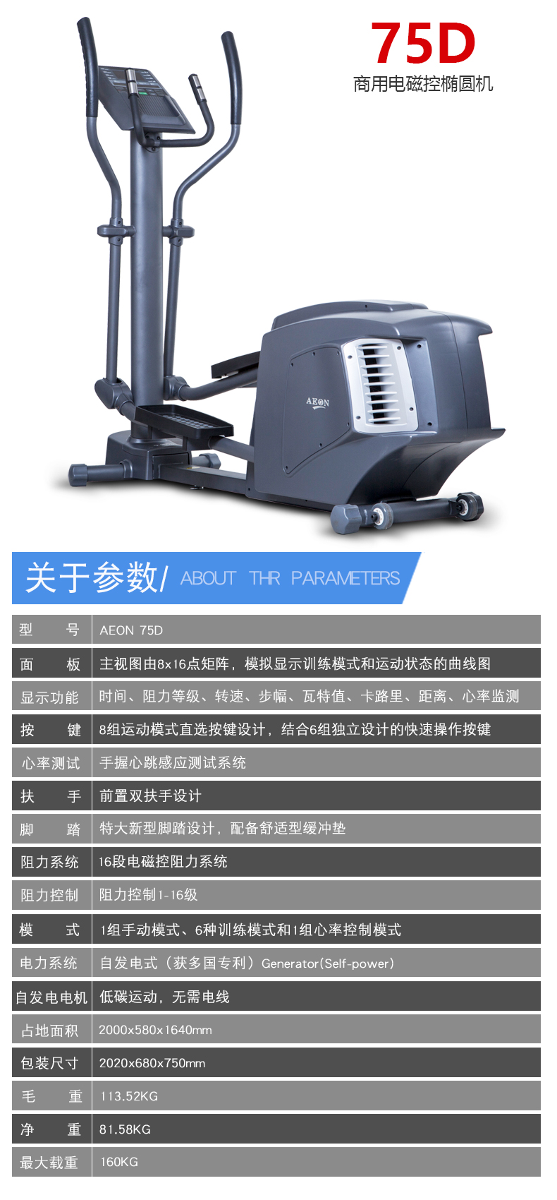 | 型号 | AEON正伦原装进口75D椭圆机 | ||